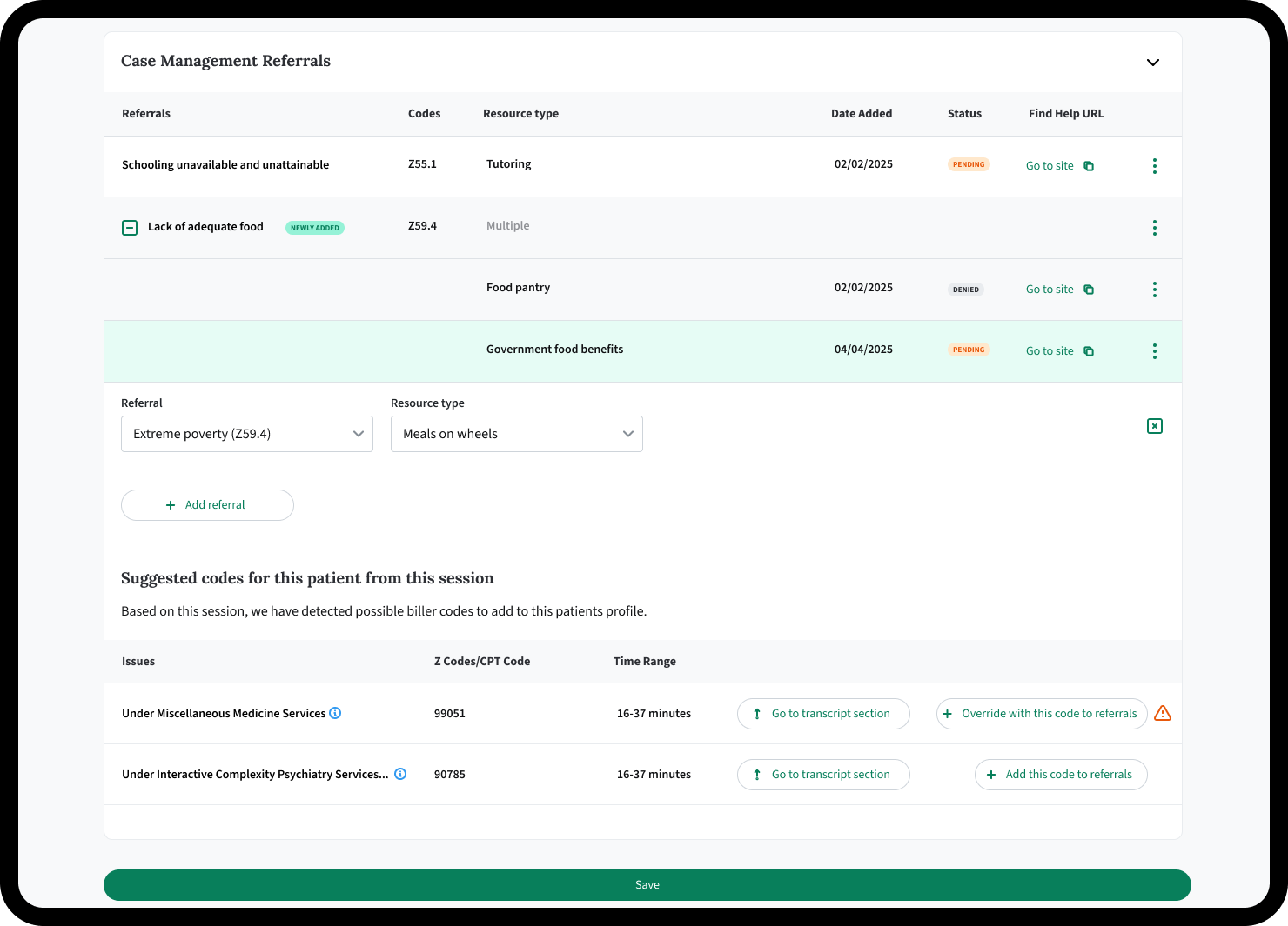 Enabled tracking and suggestion of case management referrals based on identified needs